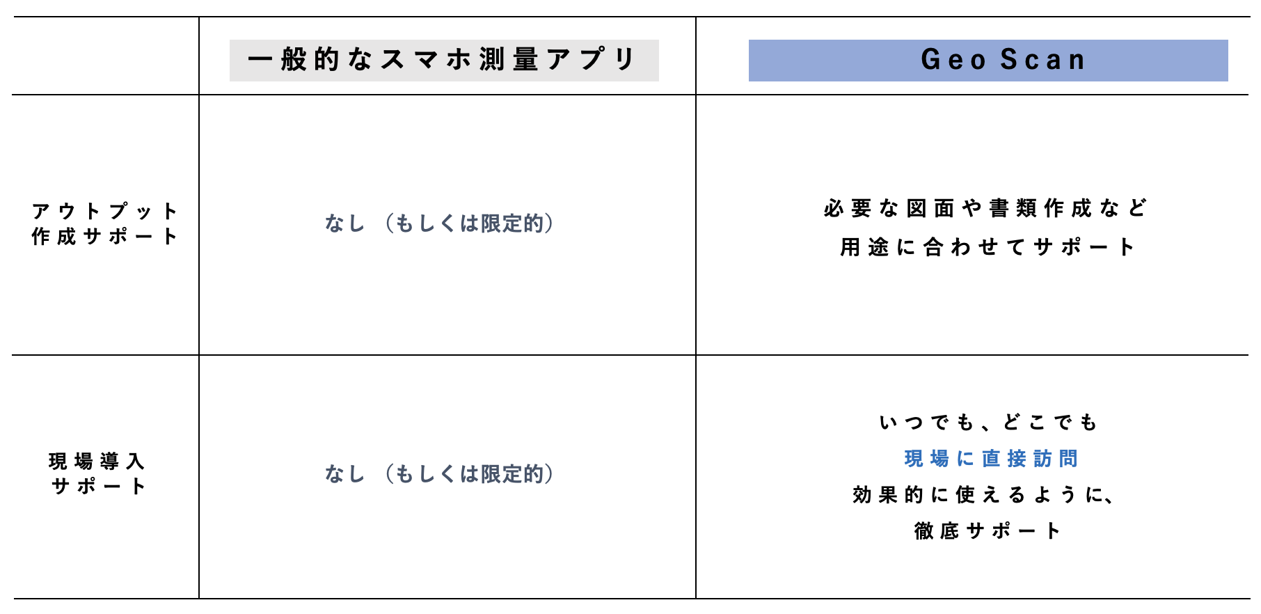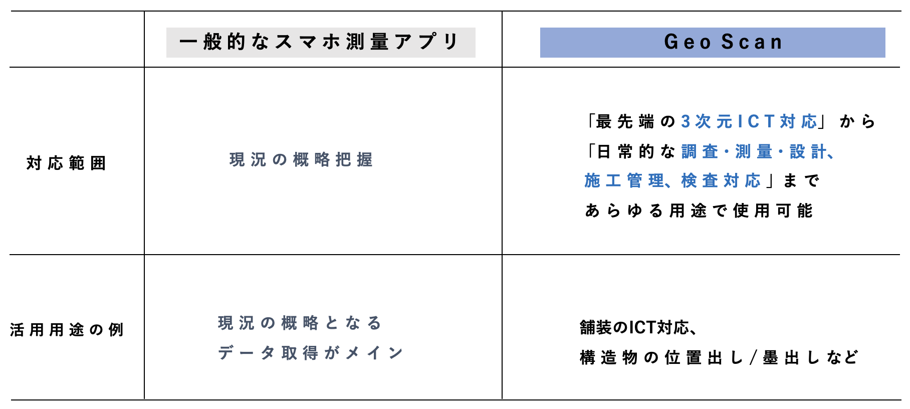 ここまで見てきたように、Geo Scanと他のスマホ測量アプリとの違いは明確だ。