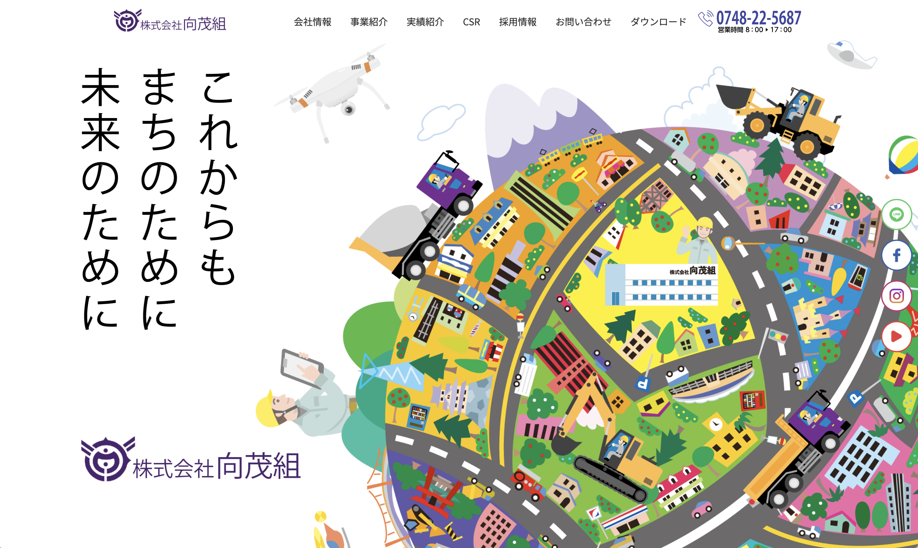 株式会社向茂組は、土砂運搬から土木・建築工事、骨材製造販売へと事業領域を拡大してきた。創業から東近江市に根を張り、地域への貢献を続けている企業だ。