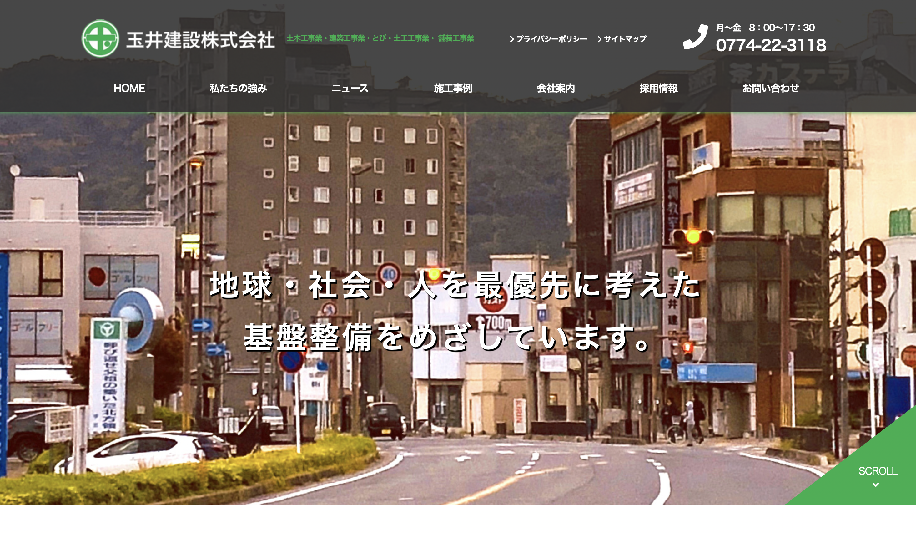 宇治市を拠点とし、福知山市と滋賀県大津市には営業所も構える玉井建設株式会社は、京都府南部を中心に、国土交通省、京都府をはじめとする官公庁の土木工事を受託し、同エリアの建設業においてリーダー的役割を担ってきた企業のひとつだ。