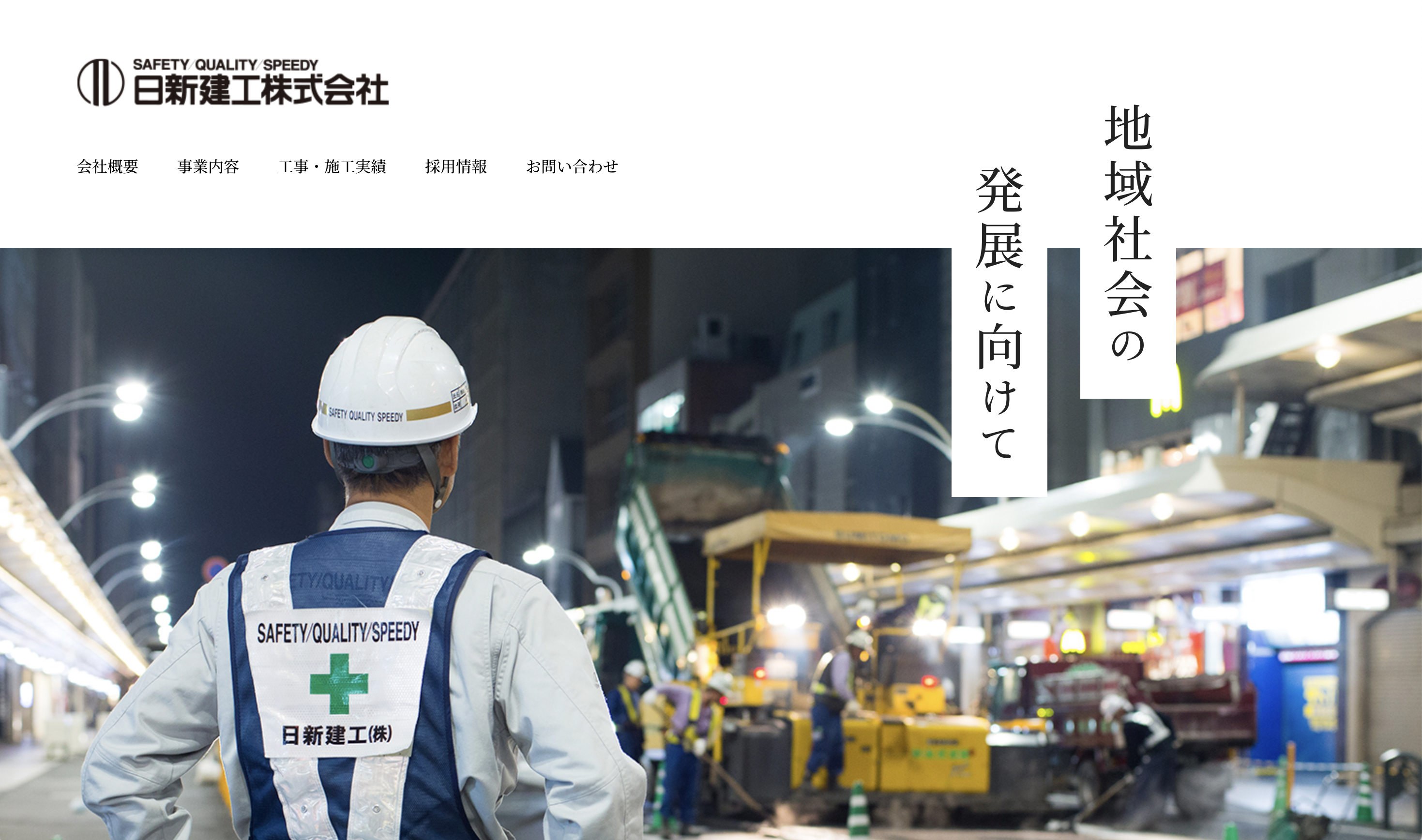 日新建工株式会社は、創業時から続く舗装工事をはじめ、都市整備計画、土木工事、建築工事で社会基盤整備に取り組む。