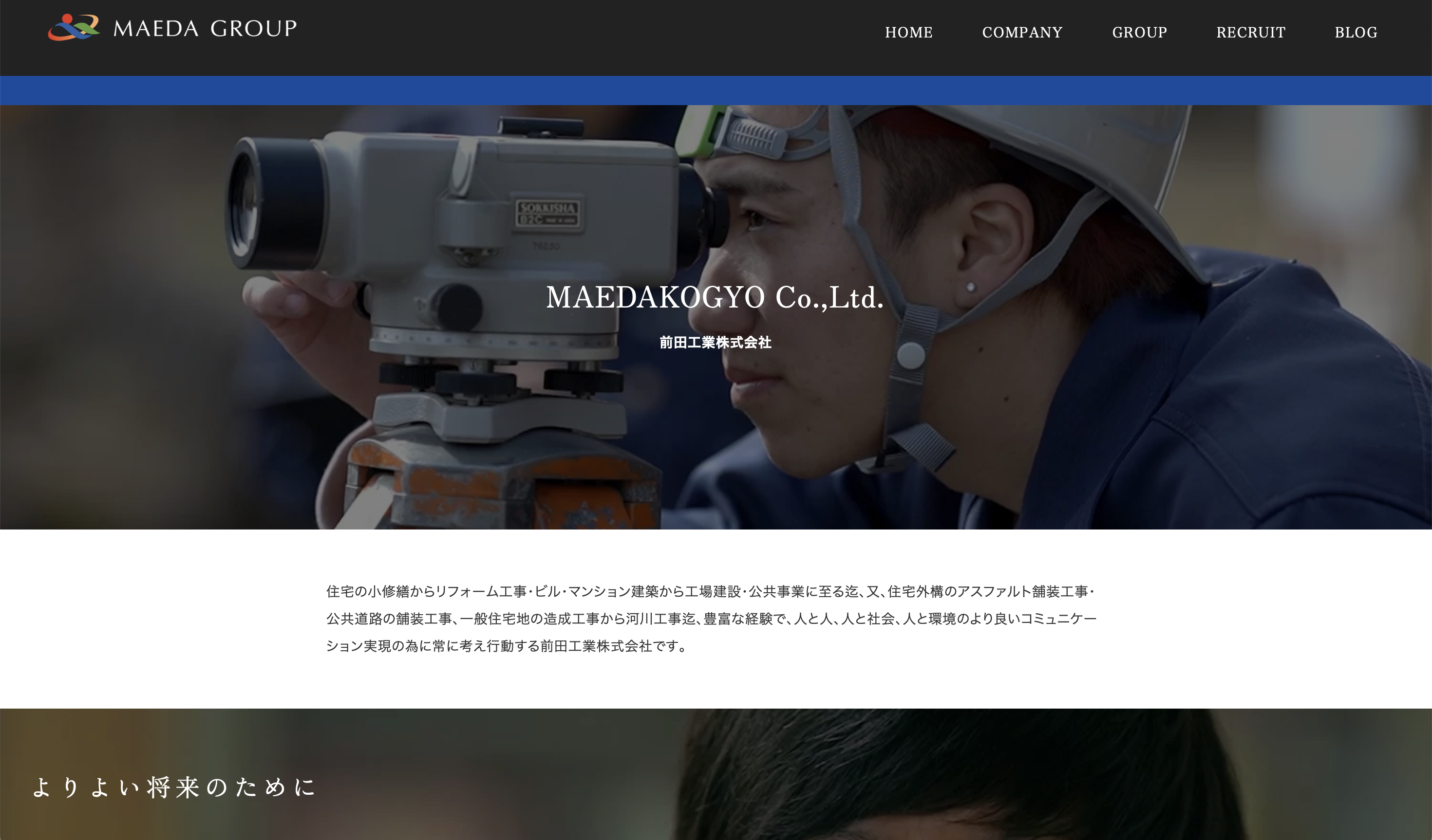 前田工業株式会社は、福知山市を拠点とする総合建設業者だ。