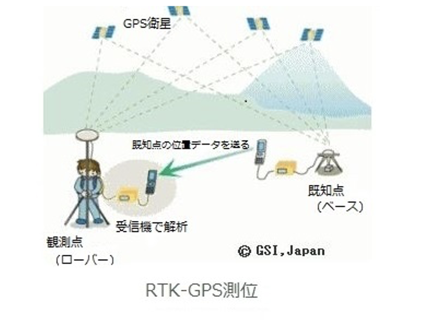 (画像元:国土地理院WEBサイトより引用)基準局と移動局の間で測定データを通信することで、単独のGNSS受信機では不可能な高精度な相対測位を実現するのがRTKの原理である。