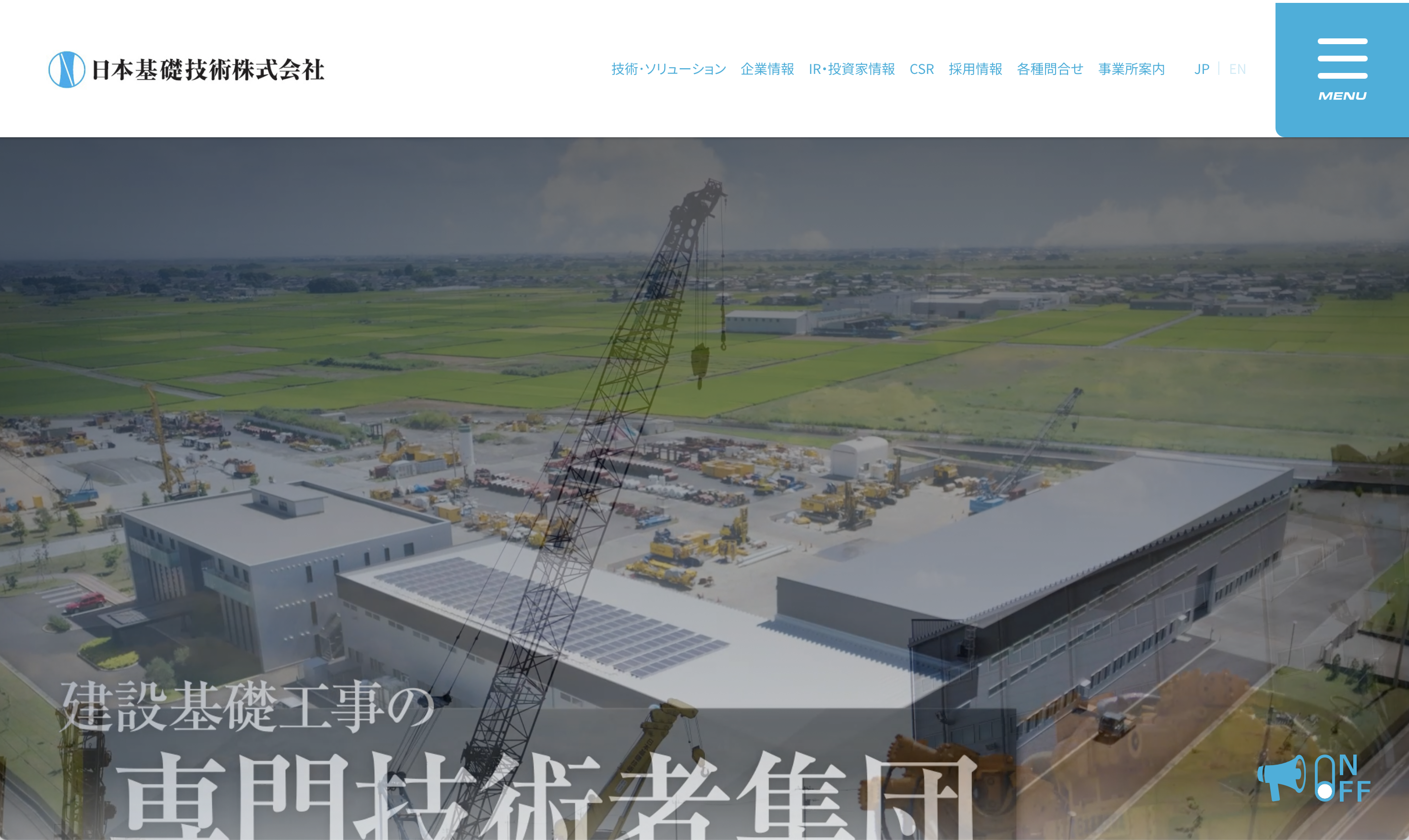 大阪市に本社を置く日本基礎技術株式会社は、削孔と注入の技術を軸として建設基礎工事を手がける。