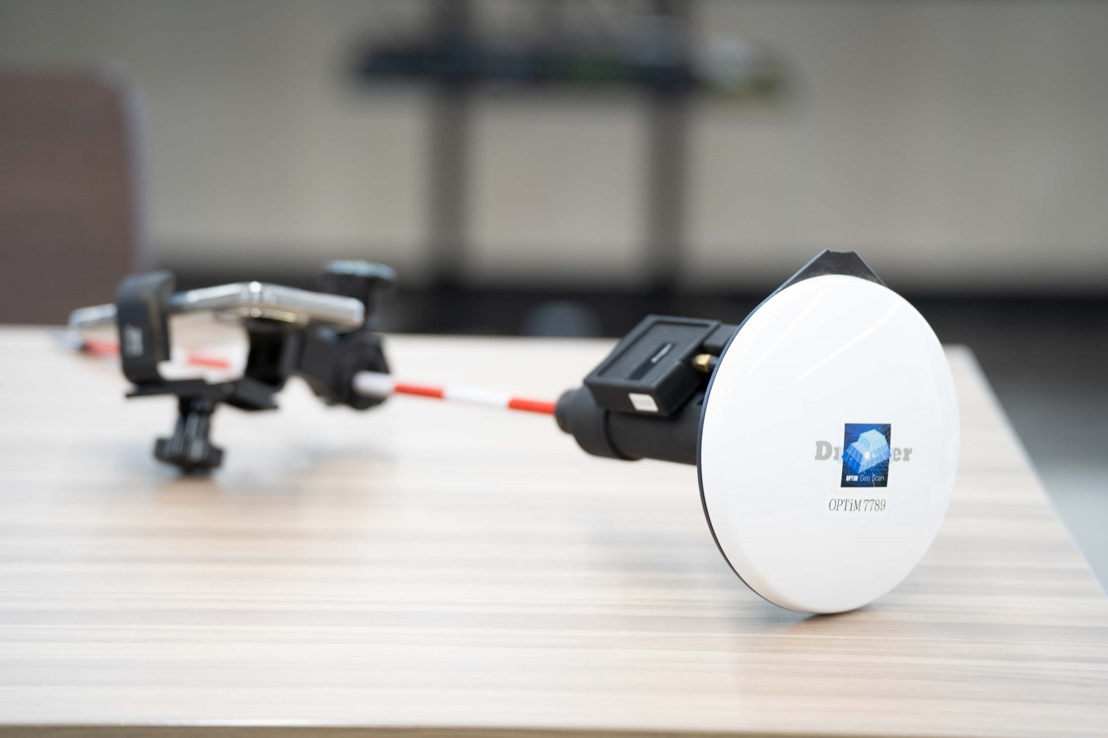 (画像:Geo Scanで活用する高性能GNSSレシーバー /撮影:砂田耕希)OPTiM Geo Scanで使用する「高性能タイプ」のレシーバーは、3周波解析に対応している。