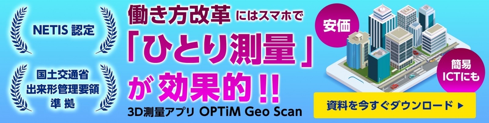 しかも、資格や経験がない人でも、ゲーム感覚でスマホをかざしながら簡単に測量可能だ。土木・建設、インフラ業界で、手軽かつ高精度な3D測量を求めるなら、「OPTiM Geo Scan」を一度試してみてはいかがだろうか。