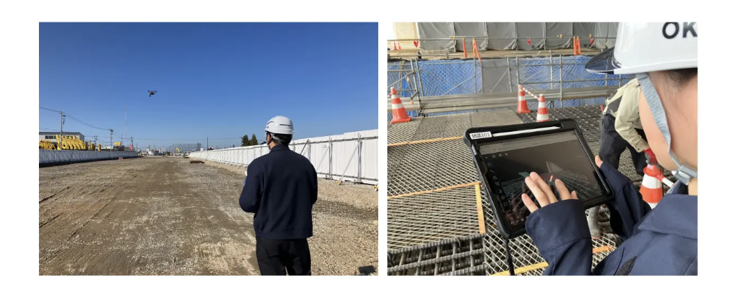 具体的には、施工プロセスにおいて3Dデータやドローンを活用した現場管理や、ICT重機による無人化施工を行い、現場管理の効率化を実現している。