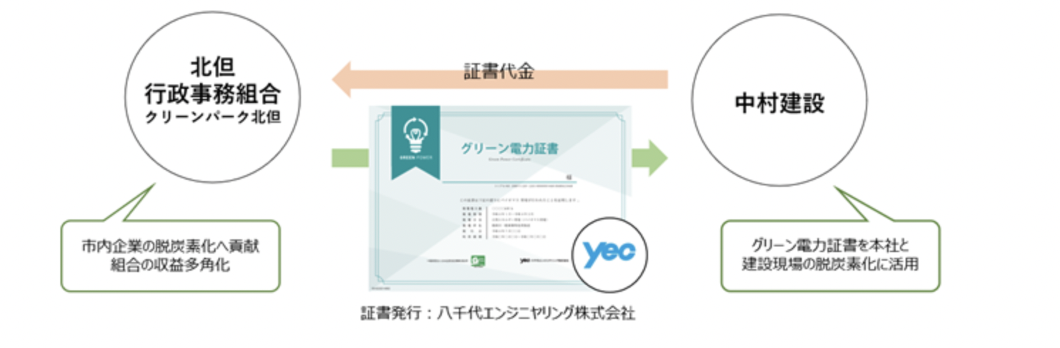 八千代エンジニヤリングは、北但行政事務組合の一般廃棄物処理施設「クリーンパーク北但」が創出するグリーン電力証書を中村建設へ供給した。