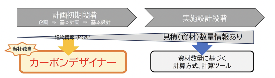 削減量を直感的に把握できる見える化を実現し、計画初期段階からホールライフカーボン削減に取り組みやすい環境を提供する。