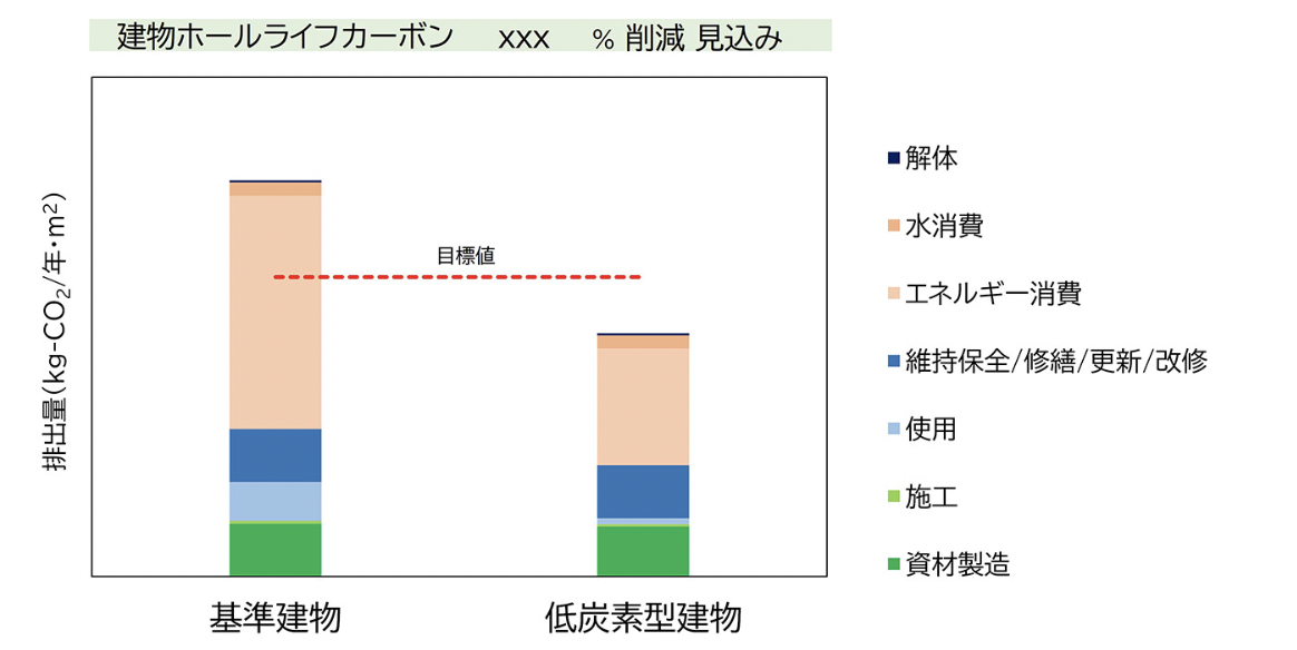 アップフロントカーボン、オペレーショナルカーボン、エンボディドカーボンといった各カテゴリにおける削減効果も同様に算出できる。