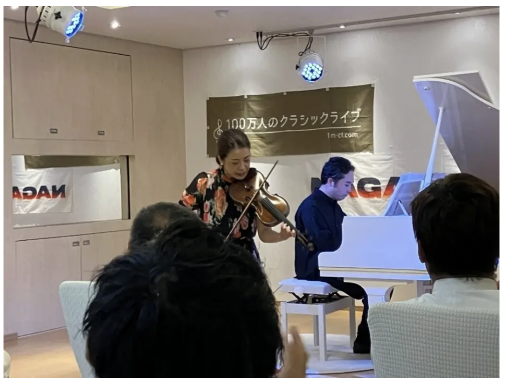 出演演奏家は、ヴァイオリンを宇佐見優氏、ピアノを山之内里衣氏が務める。