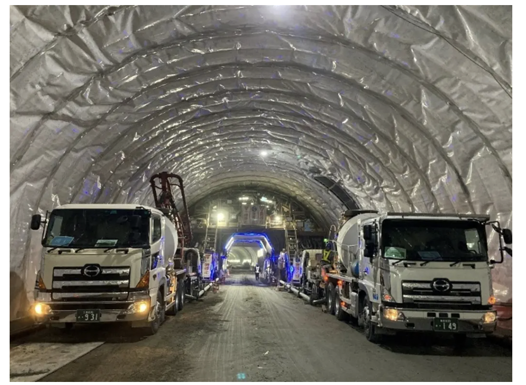 中日本高速道路名古屋支社の発注で同社が施工する東海環状自動車道養老トンネル北工事において、覆工コンクリートの自動打設システムと養生温度制御システムを適用した。