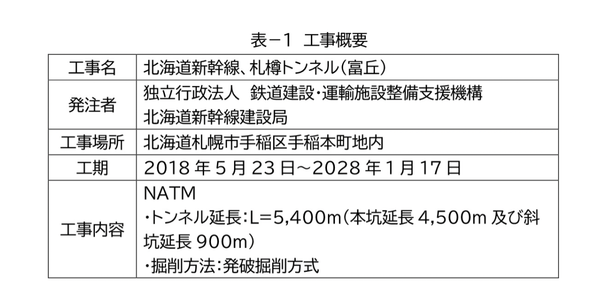 今回試験施工を実施したのは、鉄道建設・運輸施設整備支援機構北海道新幹線建設局の「北海道新幹線、札樽トンネル(富丘)」工事。