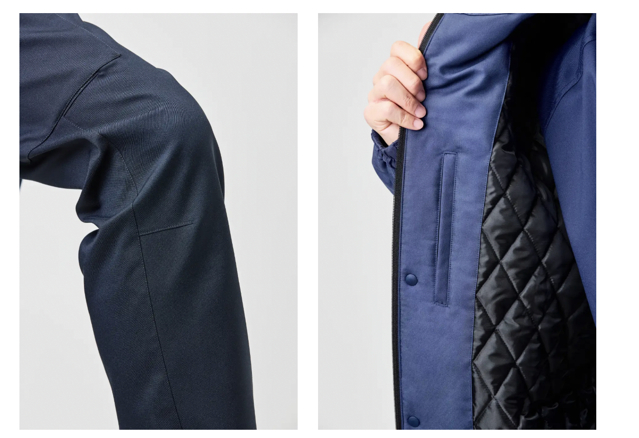 機能性を重視しながらも見た目の作業服らしさを減らし、街に溶け込む洗練された雰囲気を目指した。