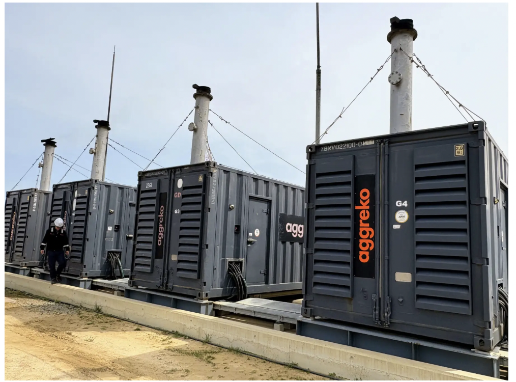 アグレコは、現地に大型発電機4台を配備し、24時間体制で稼働させることで、作業員の寮や生活施設、建設現場に必要な電力を安定的に供給している。