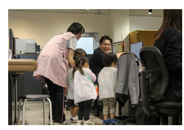 本社敷地内にある企業主導型保育園「りんごぐみ」では、社員と園児の交流が日常的に行われている。