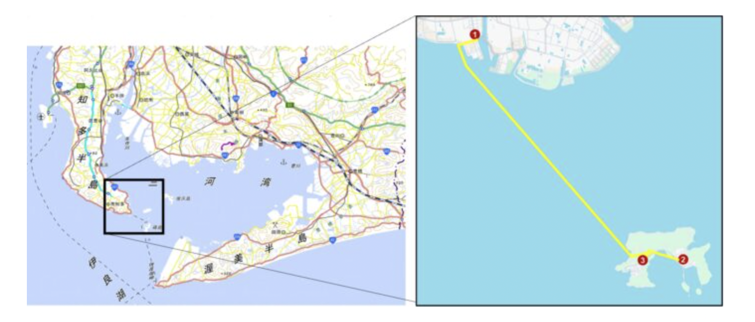 〈離着陸:西尾市一色港付近~佐久島(西尾市所有空地)距離:約10km(主に会場上空を飛行)〉