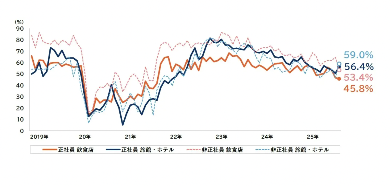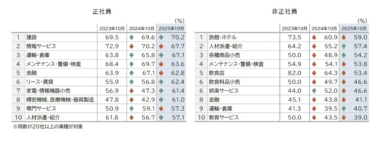 2025年10月時点で正社員の人手不足を感じている企業の割合は51.6パーセントとなり、10月としては4年連続で半数を超えた。