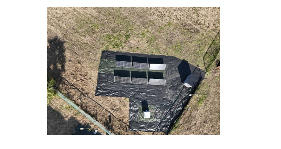 日照環境を活かし、太陽光とバッテリーのみで自立稼働する仕組みで、夜間・雨天時には電力消費を抑える自動オン・オフ制御により省エネ運用を実現している。