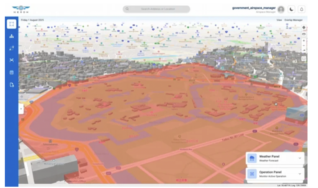 (Heron Airbridgeの空域設定画面)本提携により各社が有する先端技術と国際ネットワークを融合させ、統合型の運航ソリューションを創出するとともに、日本およびアジア地域における次世代ドローン産業の高度化と社会実装の加速を目指す。