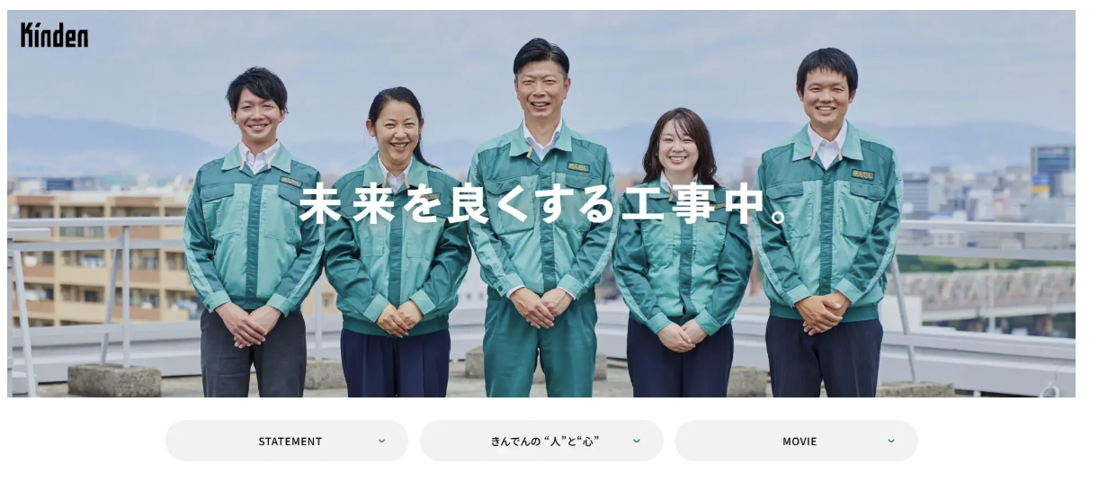 新たなサイトでは、コーポレートスローガンやステートメントの紹介に加え、社員のインタビュー記事や動画コンテンツ「きんでんの“人”と“心”」が新設されている。