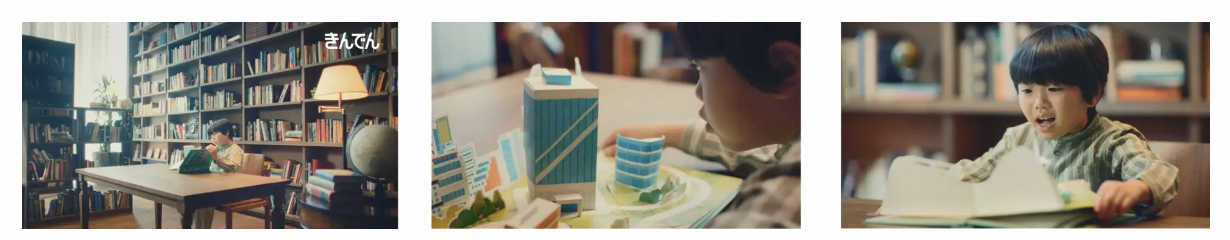 今回のCMは、誰もが親しみを感じる「飛び出す絵本」をモチーフに採用し、未来を担う子どもの視点からきんでんの事業活動を描いているのが特徴である。