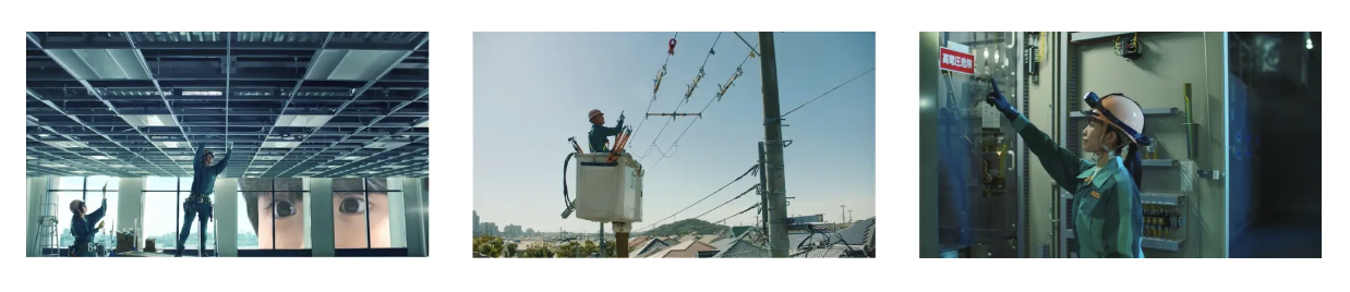 映像に登場する技術者はすべて同社の社員が演じており、現場の第一線で活躍する姿を通じて「人財力」と「社会貢献」をリアルに表現している。