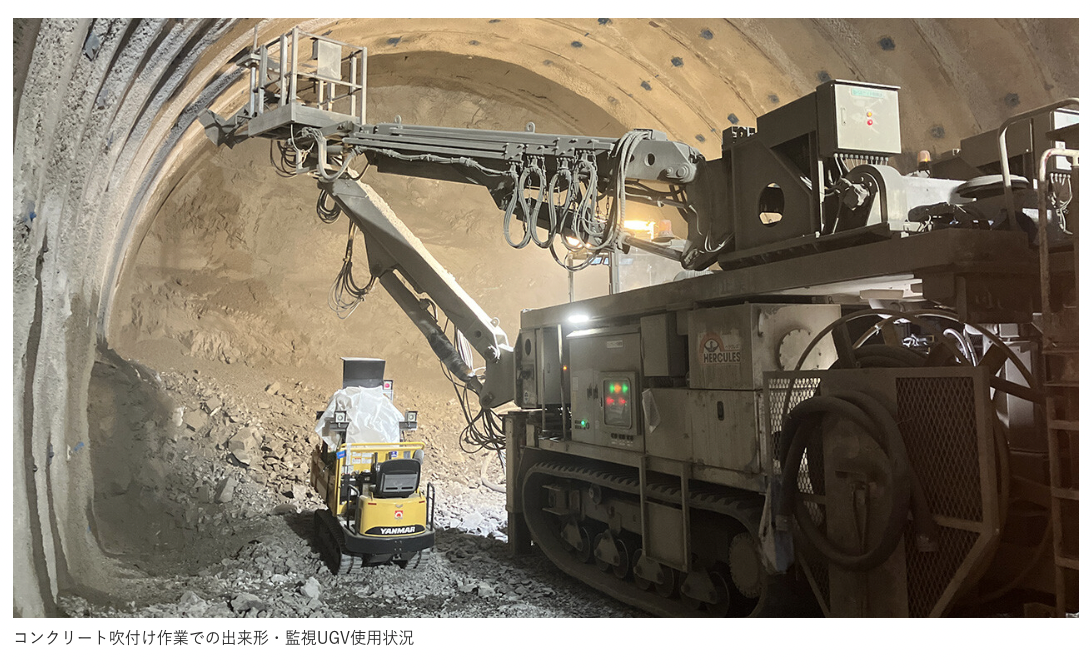 また、コンクリート吹付け作業には無遅延カメラを搭載した「出来形・監視UGV」を活用し、遠隔地からの操作を可能にしている。