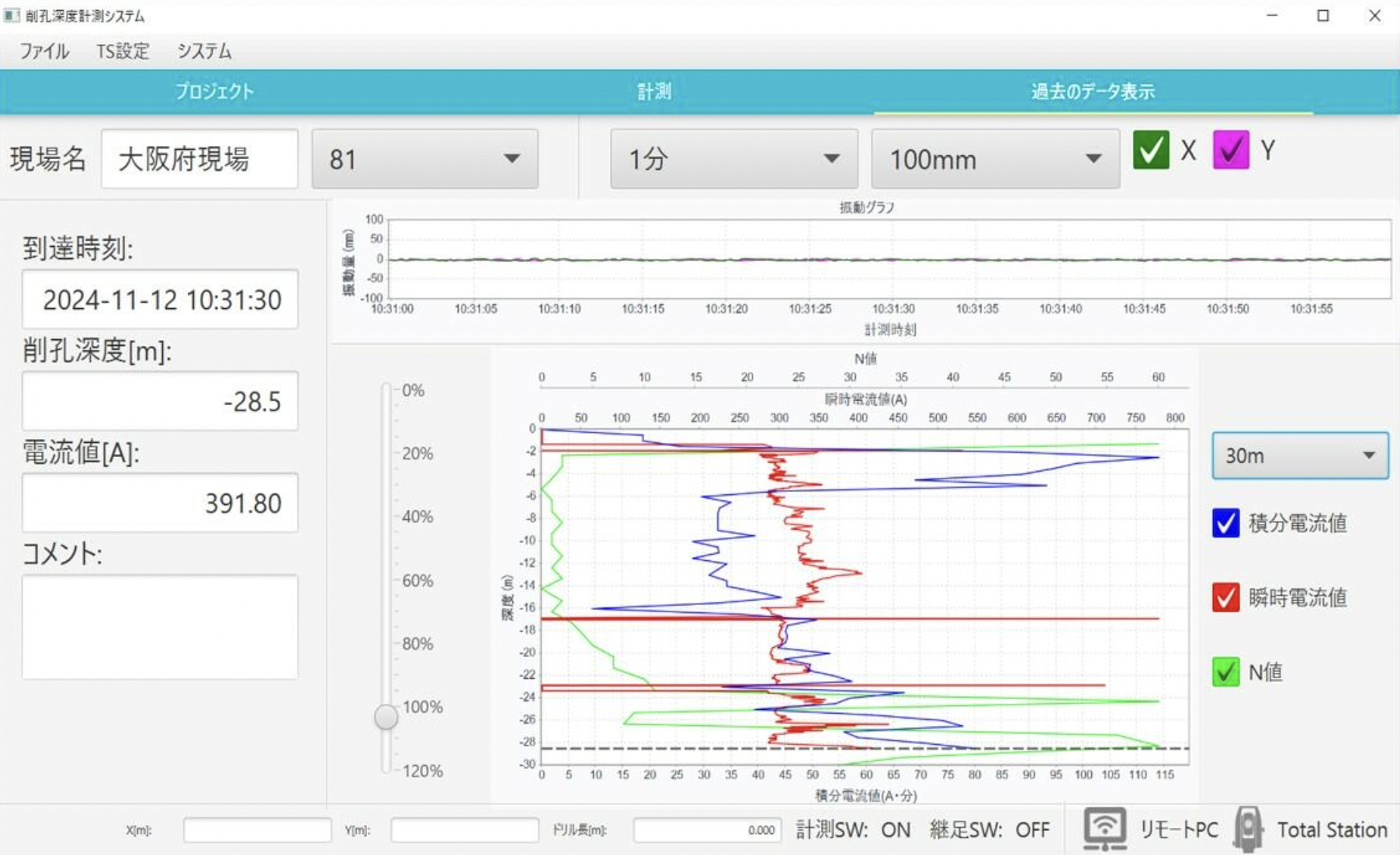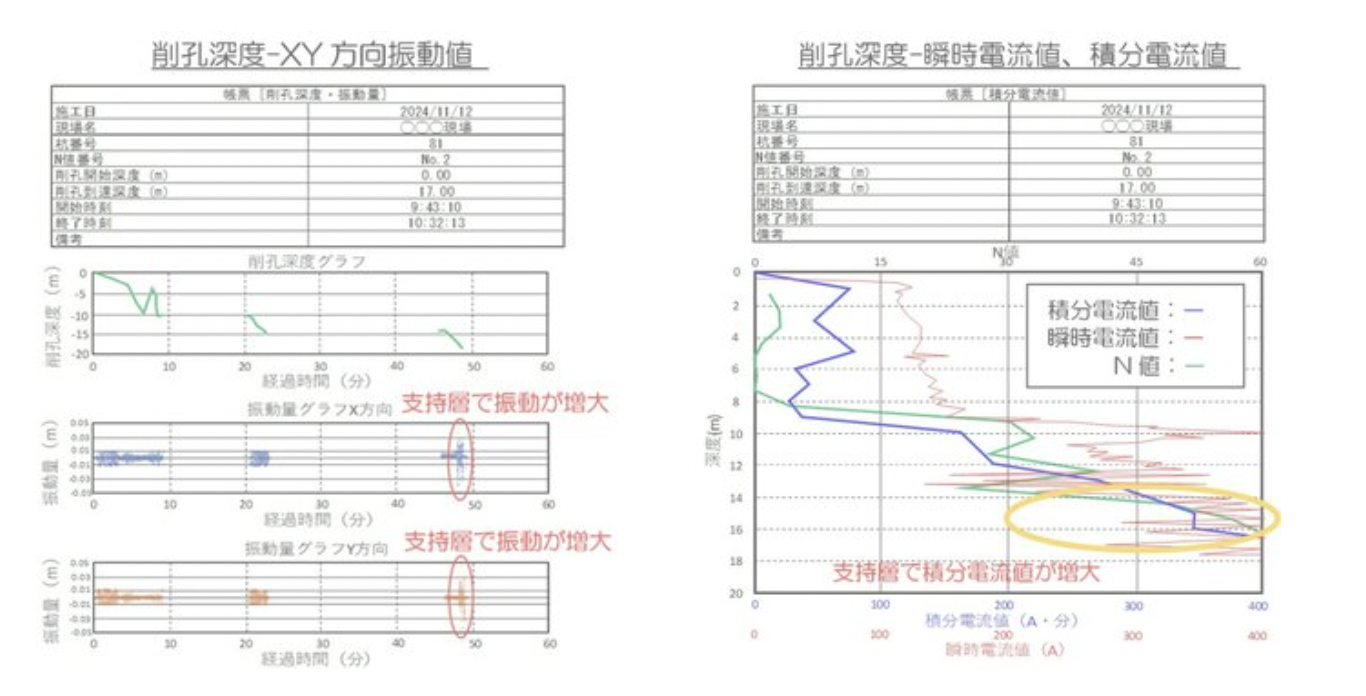 削孔深度、電流値、振動の3つのデータで支持層到達を可視化