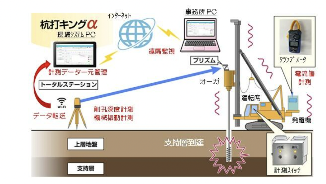 今回開発された「杭打キングα」は、2020年に開発された「杭打キングPLUS」の機能を拡張したもので、以下の3つの技術を組み合わせて支持層到達を判定する。