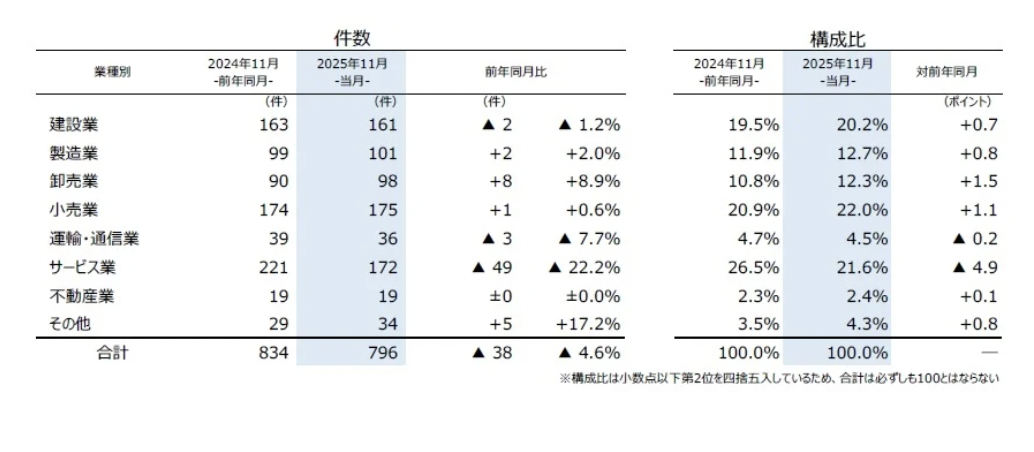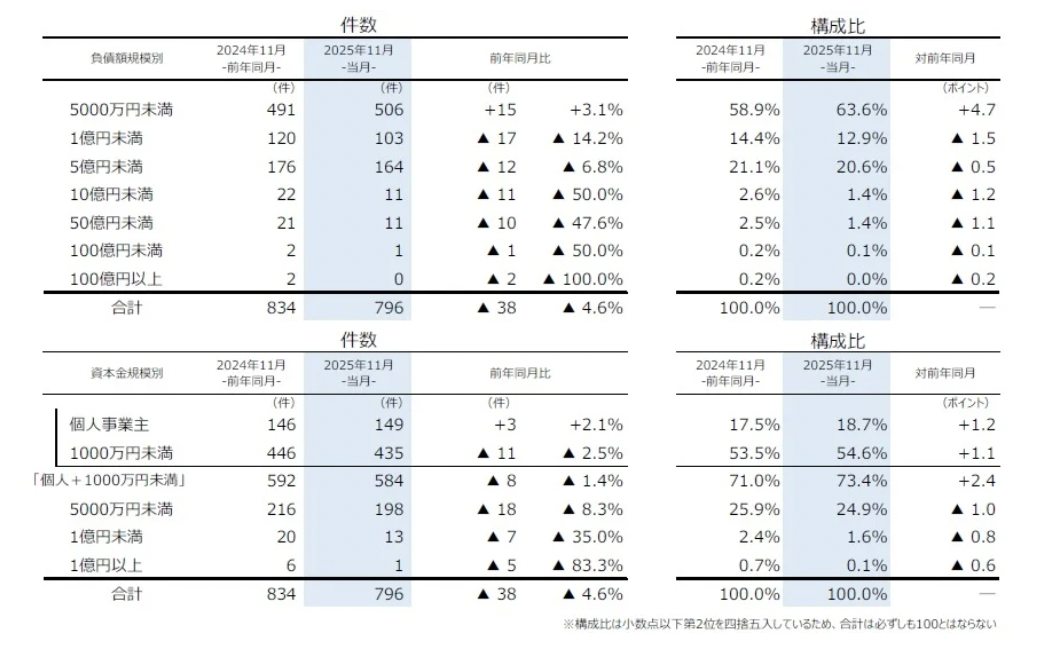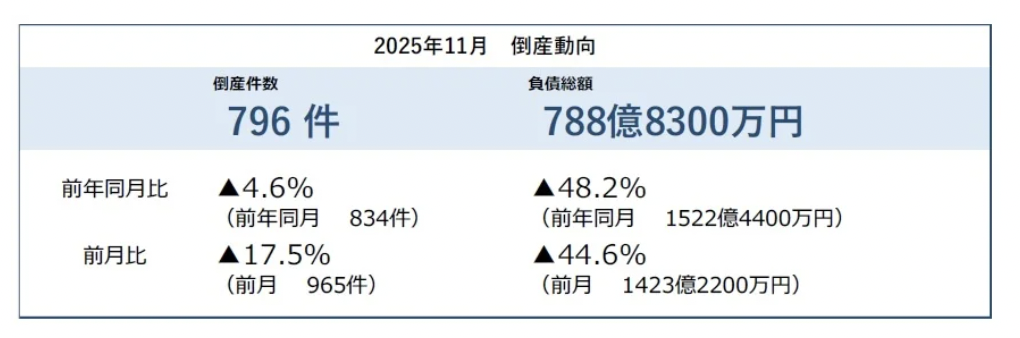 帝国データバンクは12月8日、2025年11月の全国企業倒産集計を発表した。