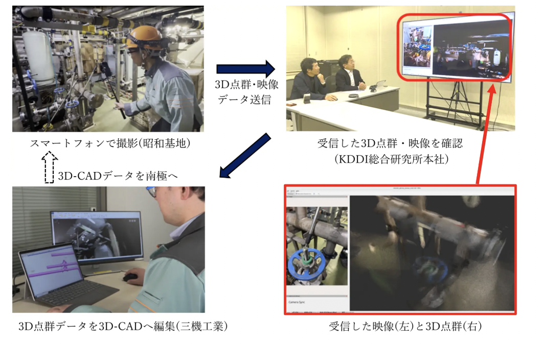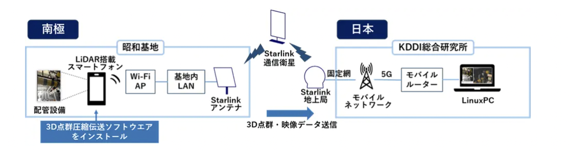 三機工業、KDDI総合研究所、国立極地研究所は12月15日、Starlink衛星通信回線を活用し、南極の昭和基地とKDDI総合研究所本社(日本)間で、3D点群データと映像をリアルタイムに伝送する実証実験に世界で初めて成功したと発表した。