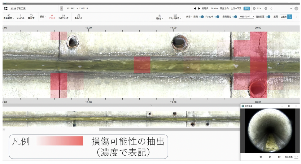 奥村組とジャストは、下水道管路調査ソフトウェア「スマカン」の拡張機能として、共同開発した「管構造抽出AI」と「損傷可能性抽出AI」を実装したと発表した。