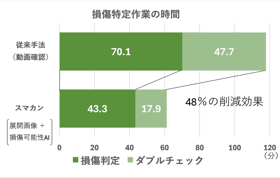 (「損傷可能性AI」による抽出結果)作業時間を48%削減、ワンストップで報告書まで作成