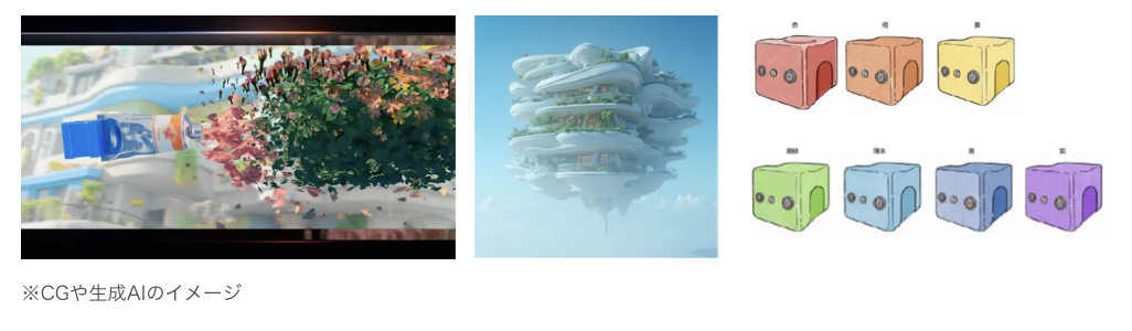 テーマは「まだ誰も見たことがない映像」。実写映像とCGを融合させ、画面から飛び出すようなインパクトのある演出が特徴となっている。