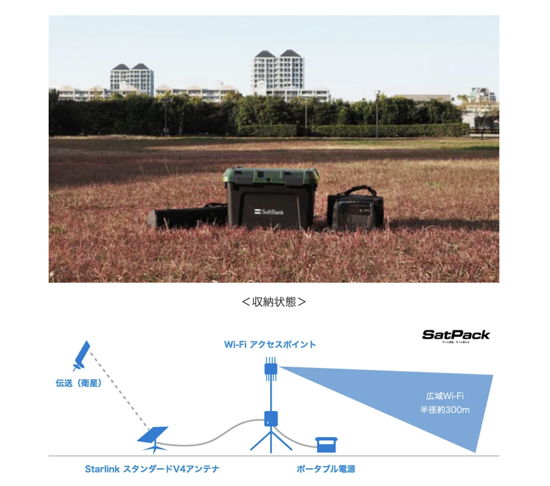 ソフトバンクは12月18日、建設現場や災害時の通信確保に向け、半径約300mの広域Wi-Fiエリアを即座に構築できる可搬型衛星通信サービス「SatPack(サットパック)」を、2026年1月中旬より提供開始すると発表した。