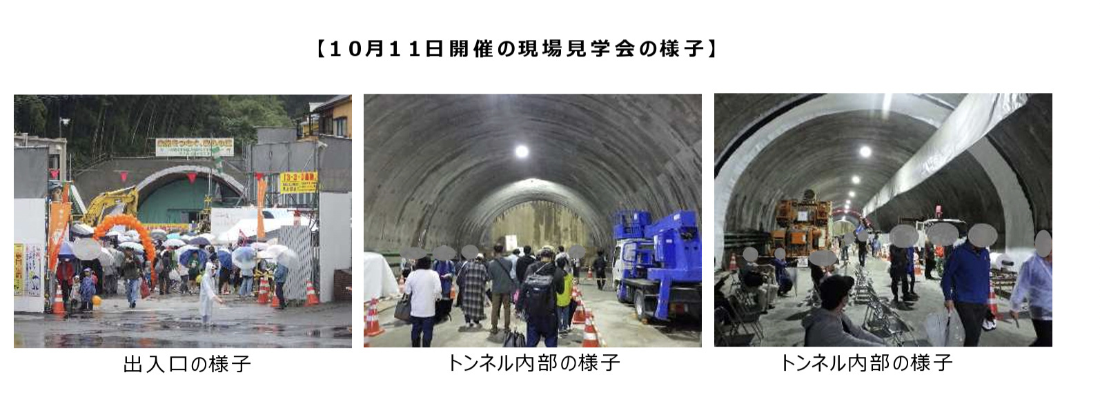 車が走る前の道路や、貫通目前の切羽(掘削面)を間近で見学できる貴重な機会となる。
