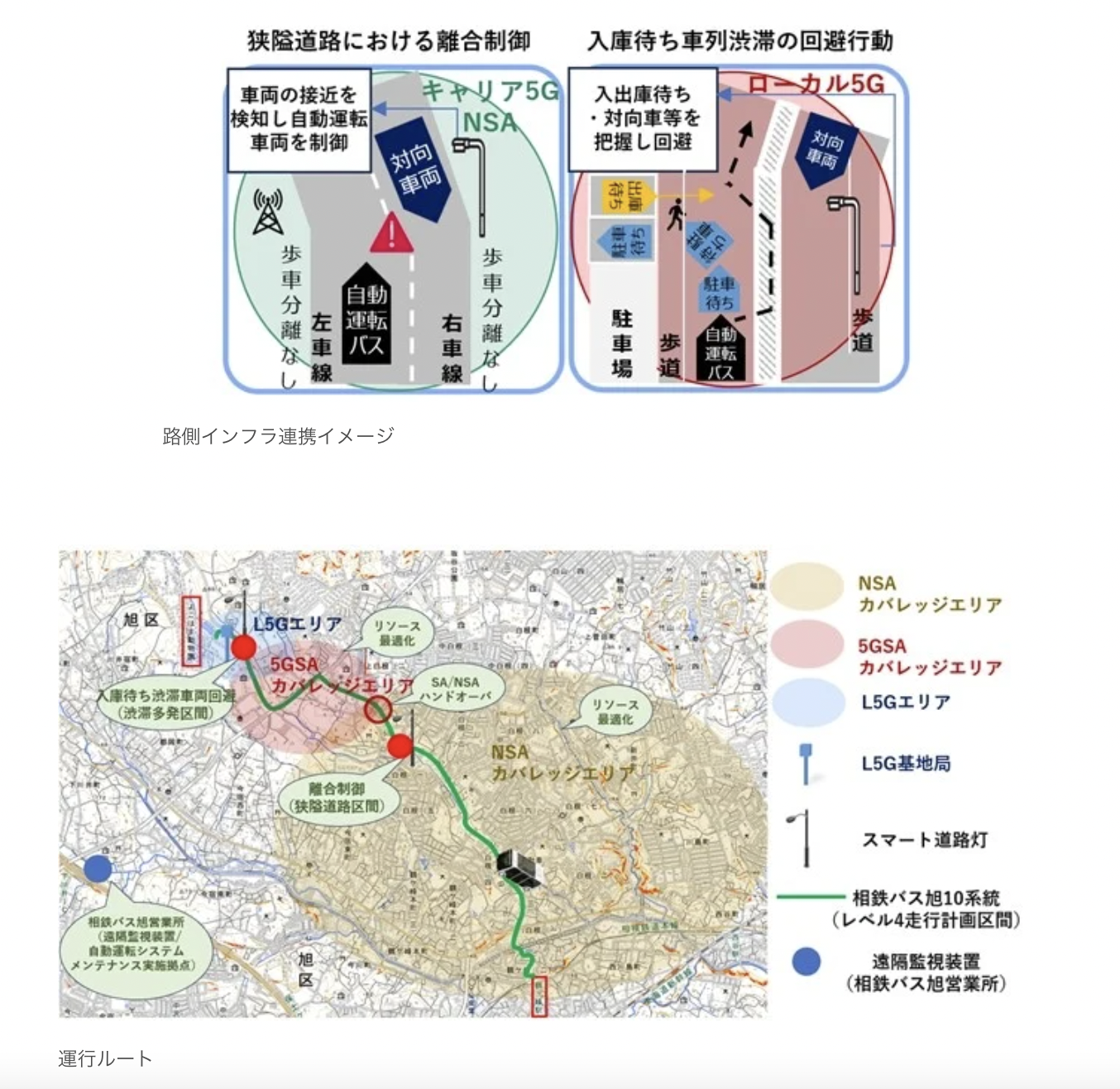 今回の実証実験では、ローカル5Gや路側インフラ(スマート道路灯など)を活用し、都市部の狭い道路や混雑エリアにおける自動運転レベル4の安定運行モデルを検証する。
