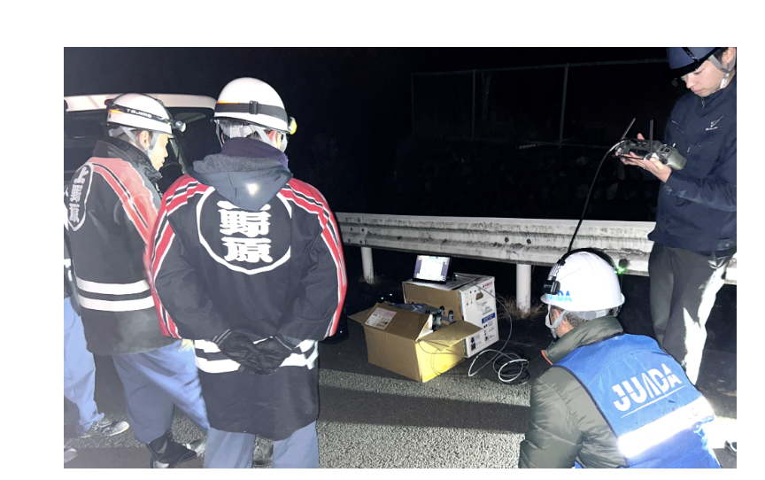 日本UAS産業振興協議会(JUIDA)を通じた陸上自衛隊東部方面隊からの要請を受け、要請当日の夜間に現地入りし、消防・警察と連携して対応にあたった。