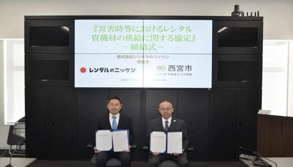 レンタルのニッケンは2026年2月5日、兵庫県西宮市と「災害時等におけるレンタル資機材提供に関する協定」を締結したと発表した。