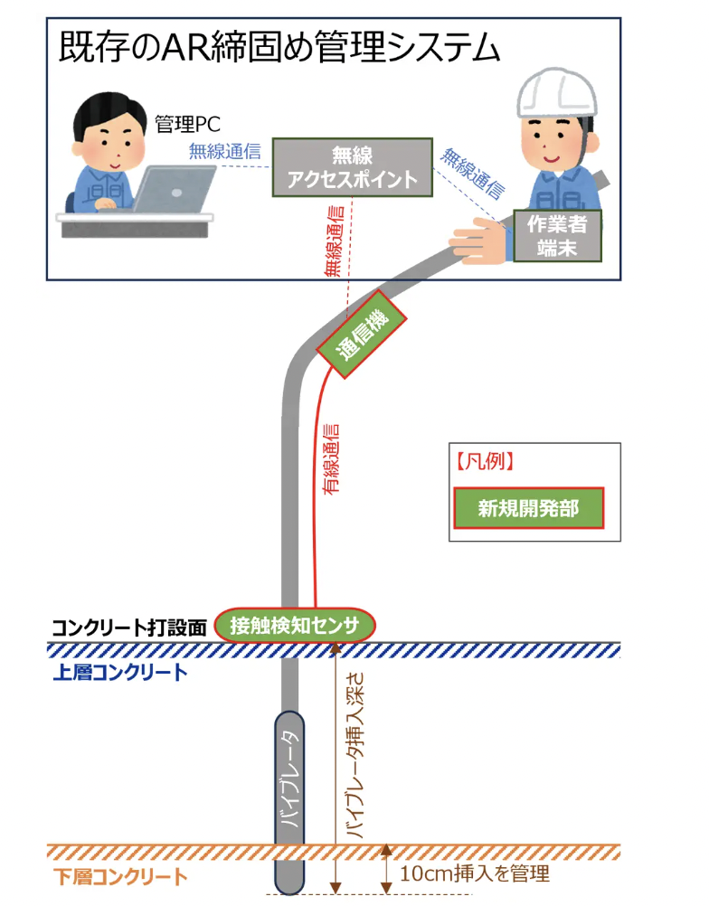 - ARシステム連携: 検知結果はリアルタイムで「AR締固め管理システム」に送信され、作業員はタブレット等の画面で「十分に挿入されたか」を確認できる。