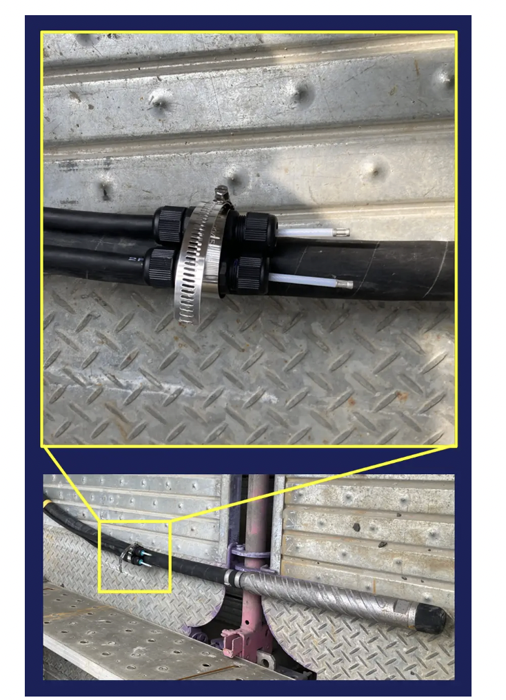 (バイブレータに取り付けられたセンサの一例)これにより、経験や勘に頼らず、客観的なデータに基づいた高品質なコンクリート打設が可能となる。