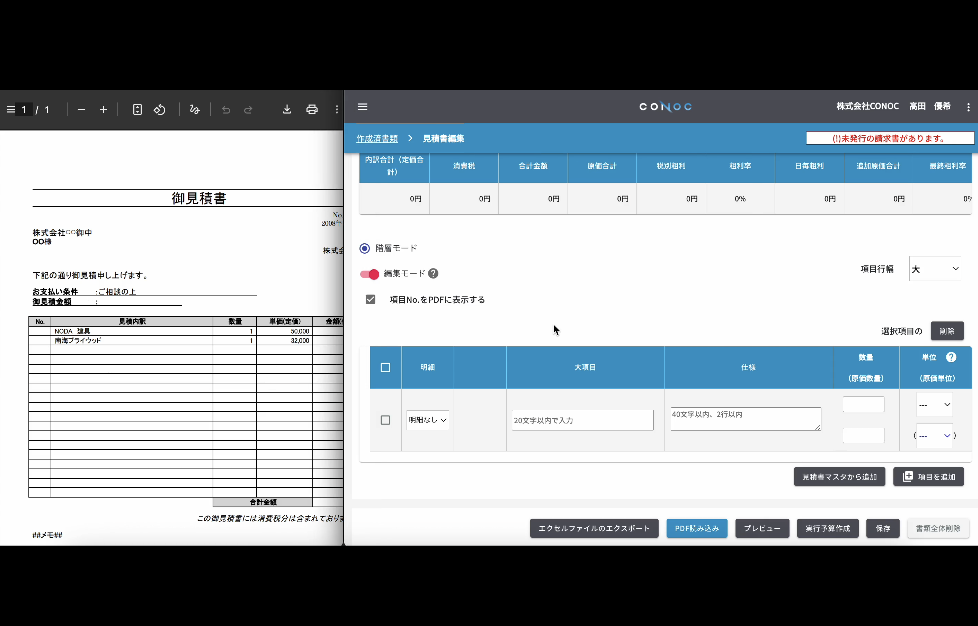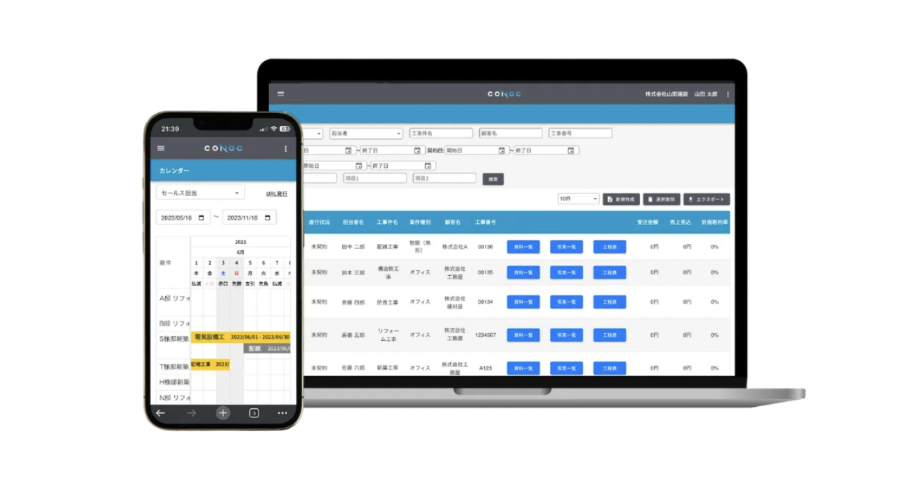 CONOCは「建設業界の常識を、ひっくり返す。」を掲げ、見積・原価管理などを一元化するクラウドツールを展開している。