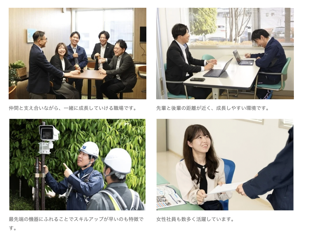 - 充実のサポート体制: 東証プライム上場企業としての安定した経営基盤を活かし、4期連続のベースアップや育休取得率100%、月平均残業時間5時間など、若手社員が安心して挑戦できる福利厚生と働きやすい社内制度を整えている。