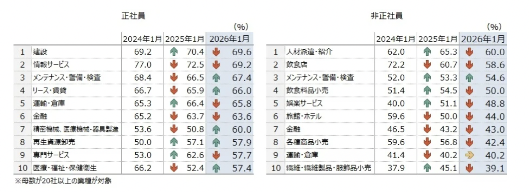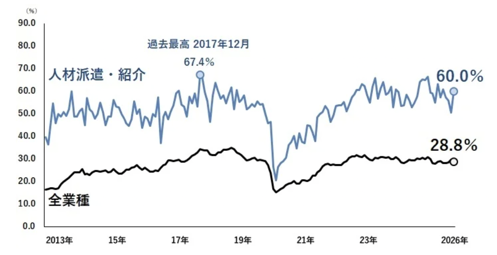 帝国データバンクは2026年2月20日、「人手不足に対する企業の動向調査(2026年1月)」の結果を発表した。