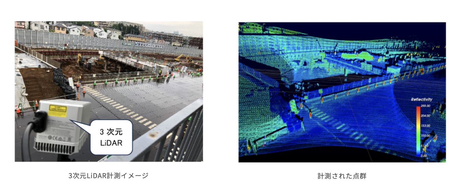 複数のLiDARを用いることで、建設現場の土留壁(どどめへき)全体を「面」として捉え、リアルタイムかつ連続的に監視することを可能にした。