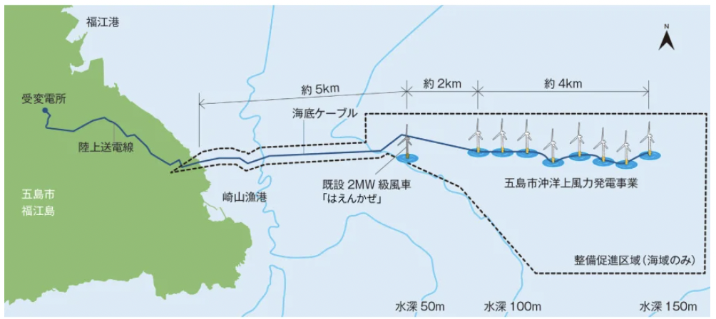 再エネ海域利用法に基づく公募占用計画の認定第1号案件であり、商用規模の「浮体式」洋上風力発電所としては国内初の事例となる。