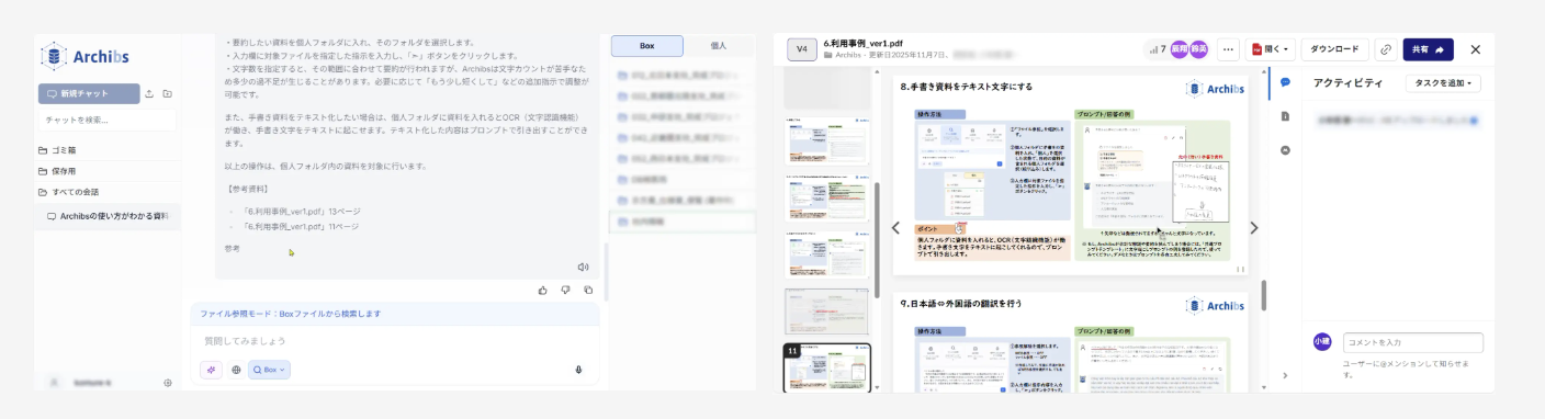(「Archibs」操作画面)「現場専属の執事(バトラー)」のように、知りたい情報へスムーズにアクセスできる環境を構築し、資料探しや確認作業にかかる時間を大幅に削減する。