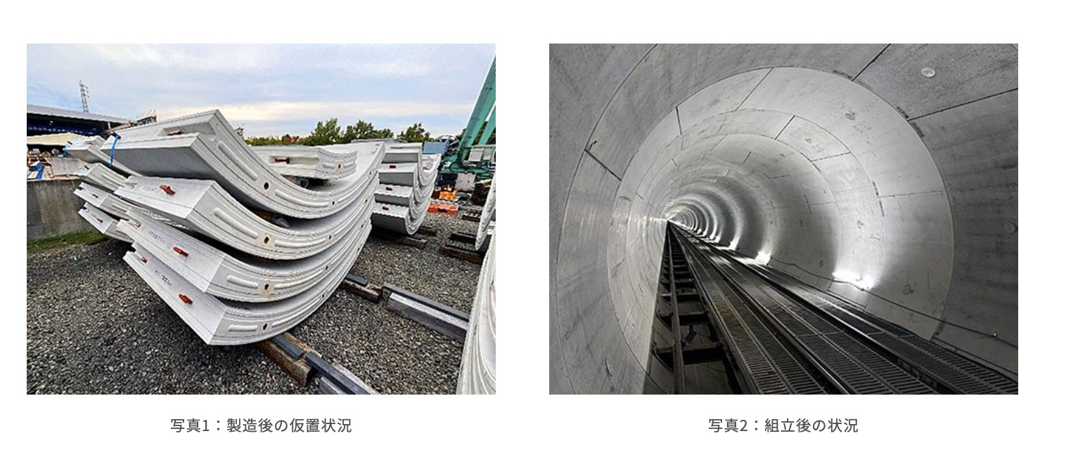 今回適用された「低炭素セグメント」は、セメントの一部を高炉スラグ微粉末などの産業副産物に置き換えたコンクリートを使用している。