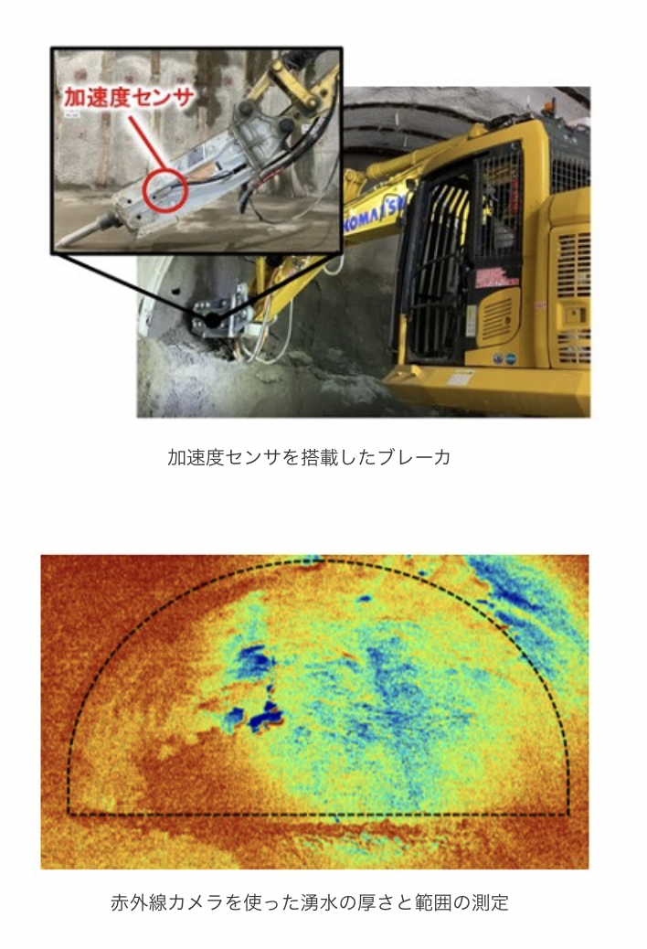 今回開発されたシステムは、スマートフォンで撮影した画像、掘削用ブレーカに取り付けた加速度センサー、コンクリート吹付け機に搭載したLiDAR、そして赤外線カメラなどを組み合わせてデータを取得する。