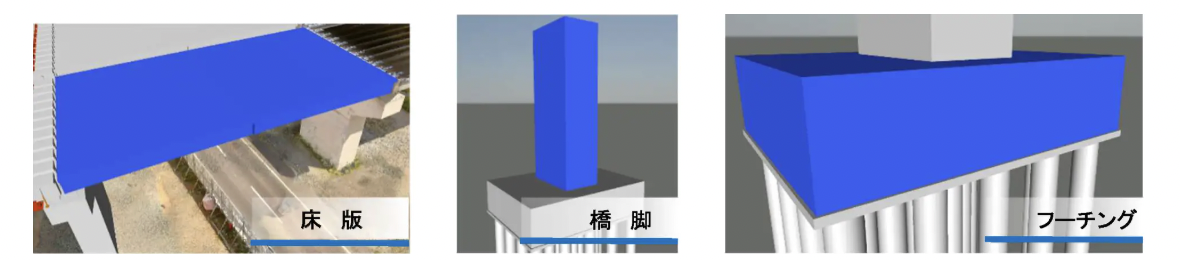(本システムが対応している構造物は、床版、橋脚、フーチング、深礎杭、中層梁)